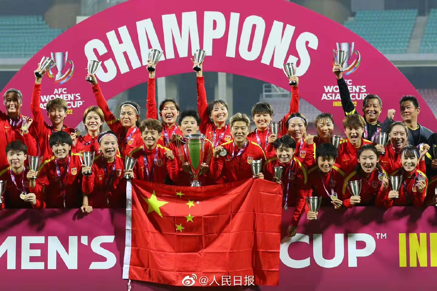 中国女足勇夺亚洲杯冠军。 图源:人民日报