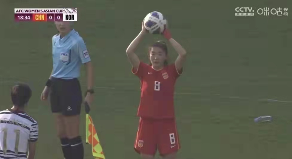 女足亚洲杯决赛中的姚伟。 直播视频截图